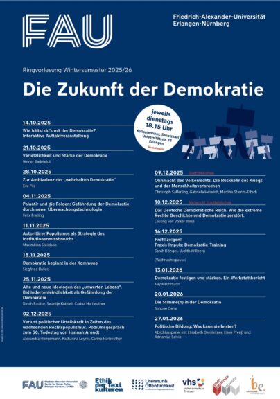 FAU Erlangen-Nürnberg zeichnet chinesischen Rechtswissenschaftler aus Die Friedrich-Alexander-Universität Erlangen-Nürnberg verleiht den diesjährigen Human Rights Award an den chinesischen Rechtswissenschaftler, Aktivisten und ehemaligen Professor der Tsinghua-Universität Peking, Xu Zhangrun 许章润. Die…